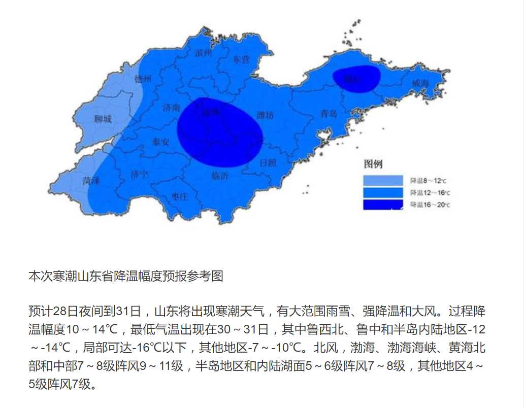 受寒潮天氣影響,山東遭遇雨雪、大風(fēng)齊襲,山東省氣象臺(tái)繼續(xù)發(fā)布寒潮黃色、暴雪黃色和道路結(jié)冰橙色預(yù)警信號(hào)。