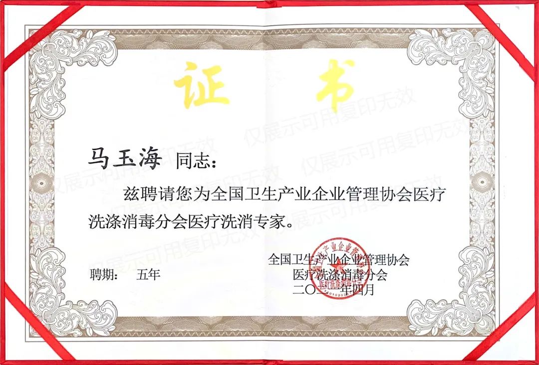其中,在醫(yī)療洗滌消毒分會(huì)年會(huì)上,副會(huì)長黃仁瑞宣布全國衛(wèi)生產(chǎn)業(yè)企業(yè)管理協(xié)會(huì)醫(yī)療洗滌消毒分會(huì)醫(yī)療洗消專家組正式成立,并公布了公布全體69位專家名單。日照國濟(jì)尚領(lǐng)醫(yī)院管理服務(wù)有限公司董事長馬玉海被協(xié)會(huì)聘為醫(yī)療洗滌消毒分會(huì)專家,聘期五年。