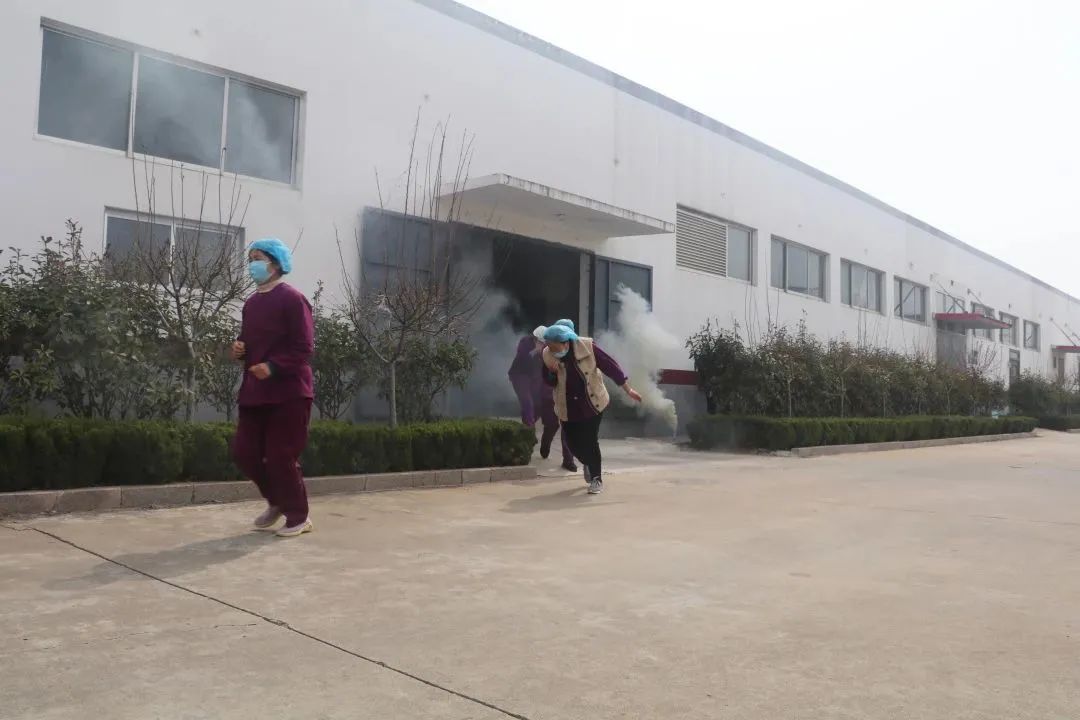 培訓(xùn)結(jié)束后,進(jìn)行現(xiàn)場消防安全模擬演練,首先在洗滌中心某處發(fā)現(xiàn)起火點(diǎn),附近兩名職工發(fā)現(xiàn)火情后立即拿取滅火器對起火點(diǎn)進(jìn)行滅火,隨后大聲呼喊,組織車間職工進(jìn)行疏散,到達(dá)安全區(qū)域后關(guān)閉總電閘,撥打119火警電話,并聯(lián)系安全負(fù)責(zé)人告知現(xiàn)場情況。