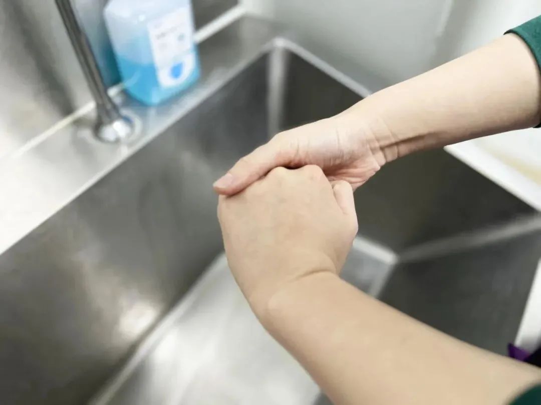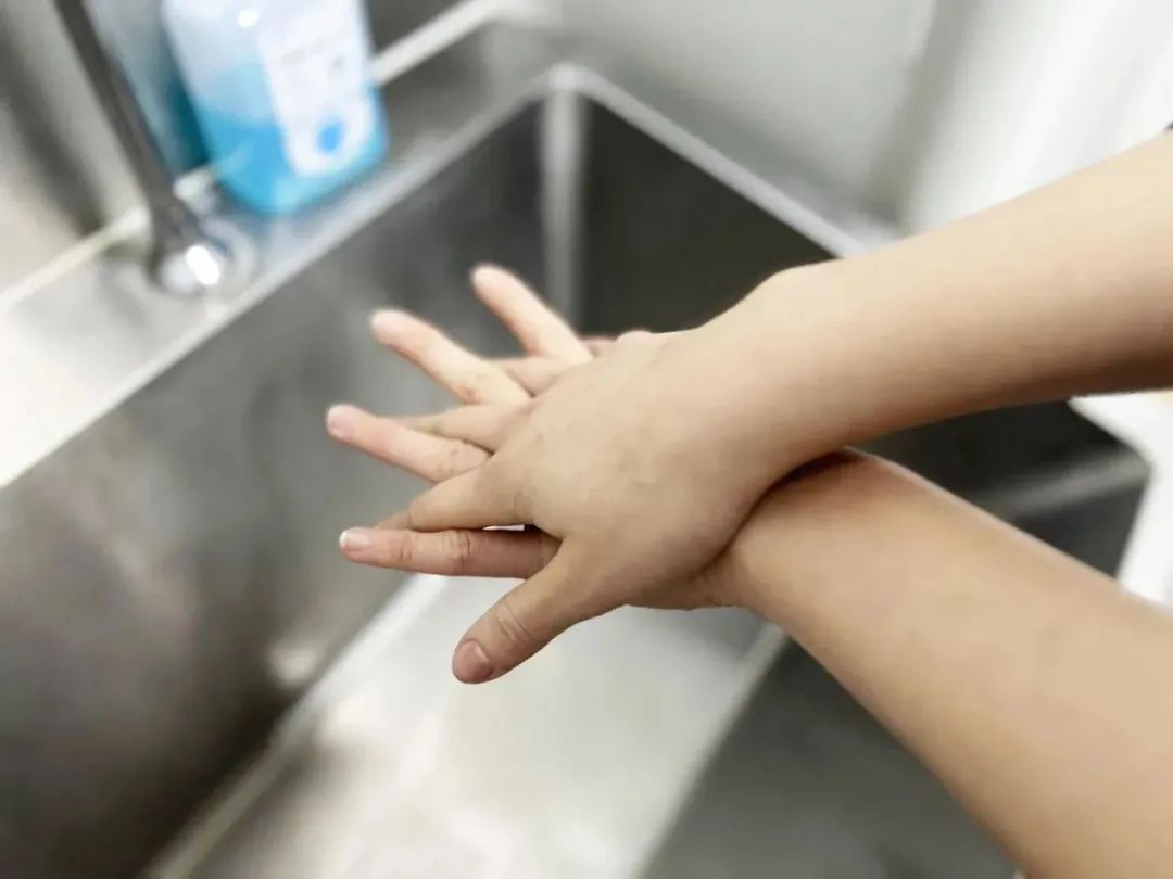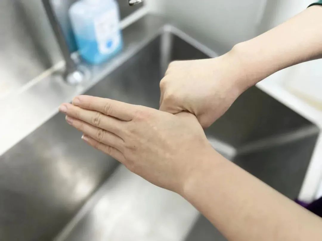 落實(shí)七步洗手法,認(rèn)真揉搓雙手至少15秒,應(yīng)注意清洗雙手所有皮膚,包括指背、指尖和指縫,具體揉搓步驟如下:
